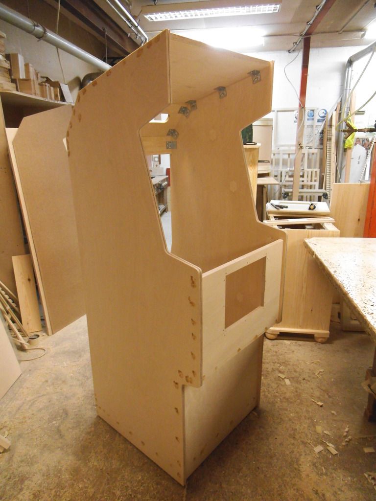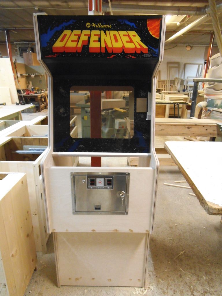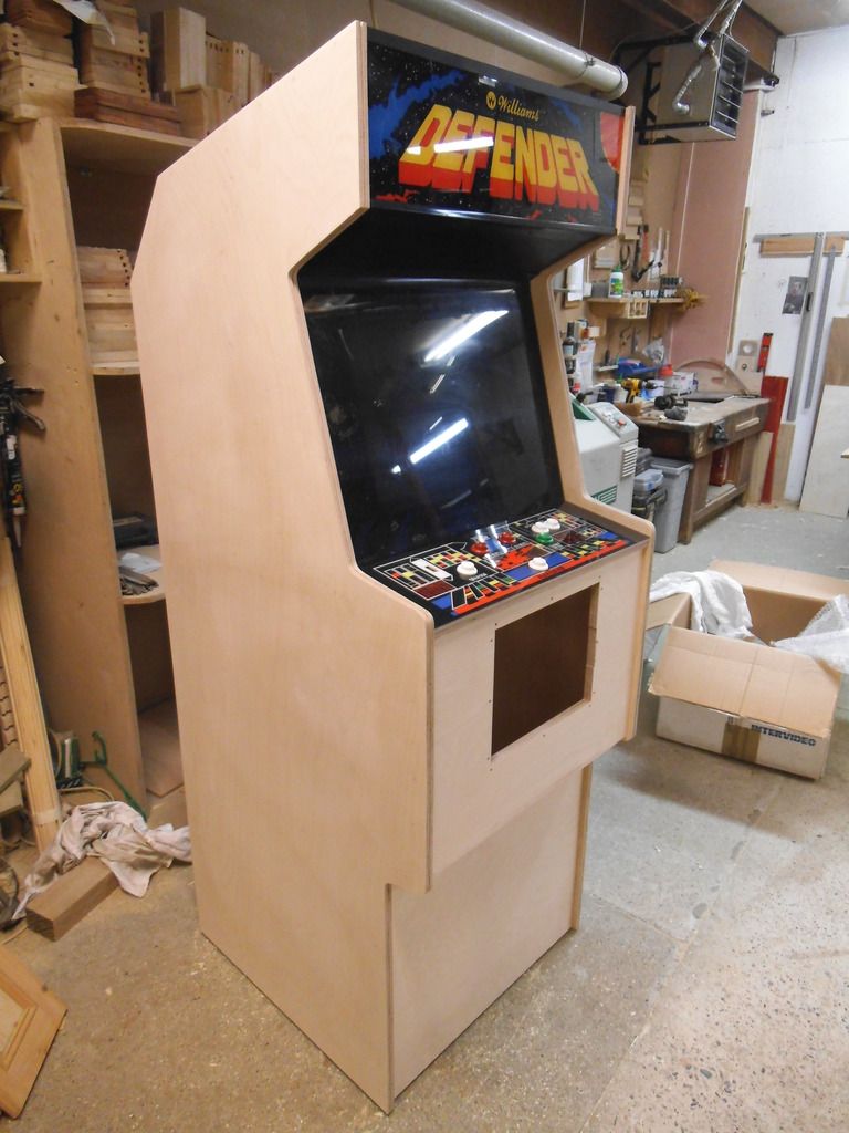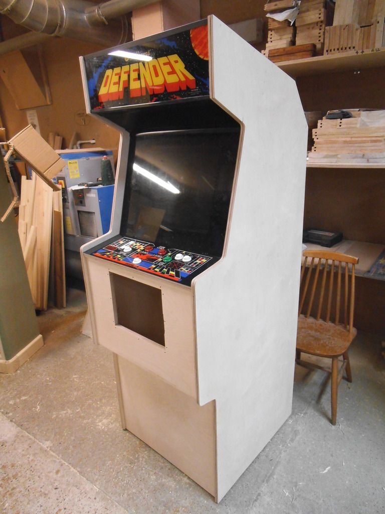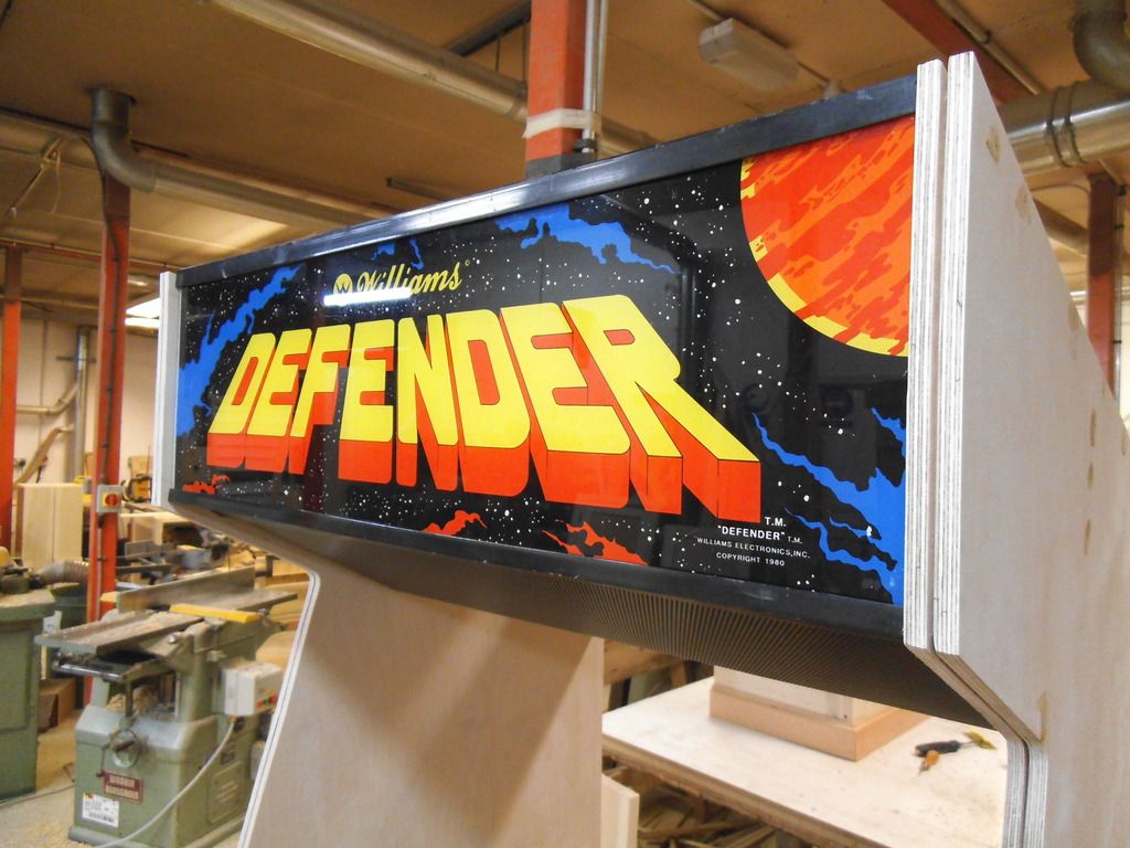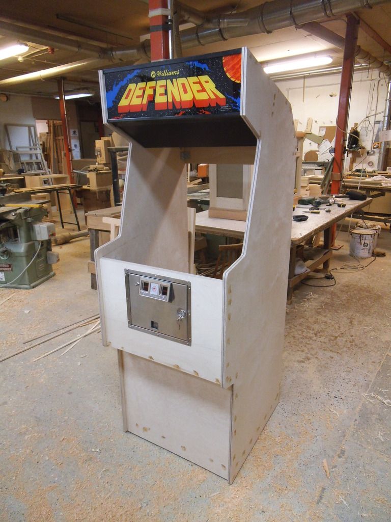 I did the same as my Robotron regarding the shape of the sides...I got a piece of hardboard and just basically pressed it up against the original cab and drew around the shape and then cut it out at work with a jigsaw...