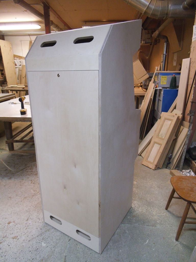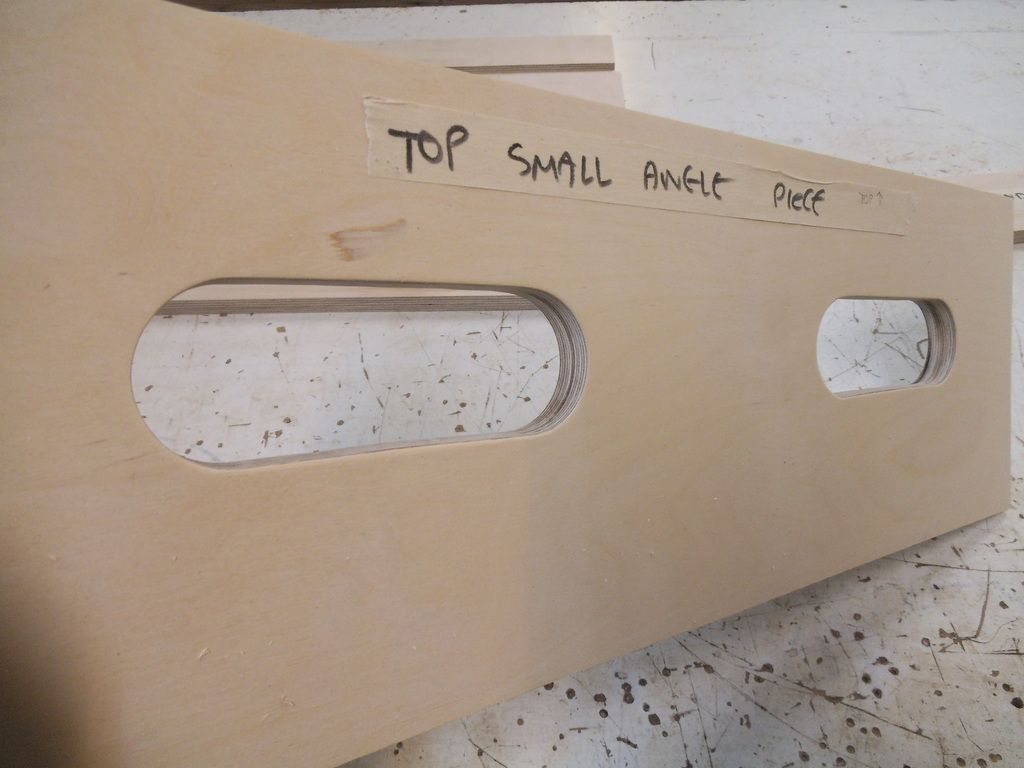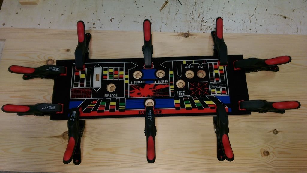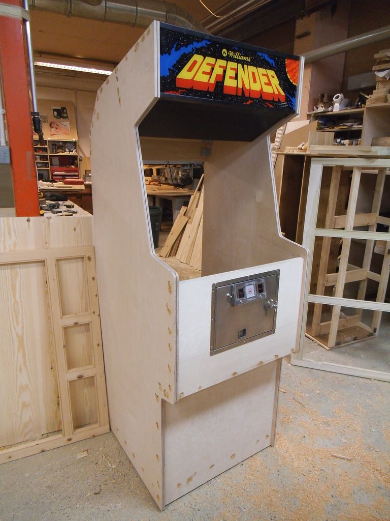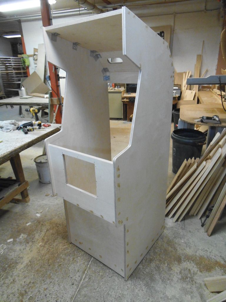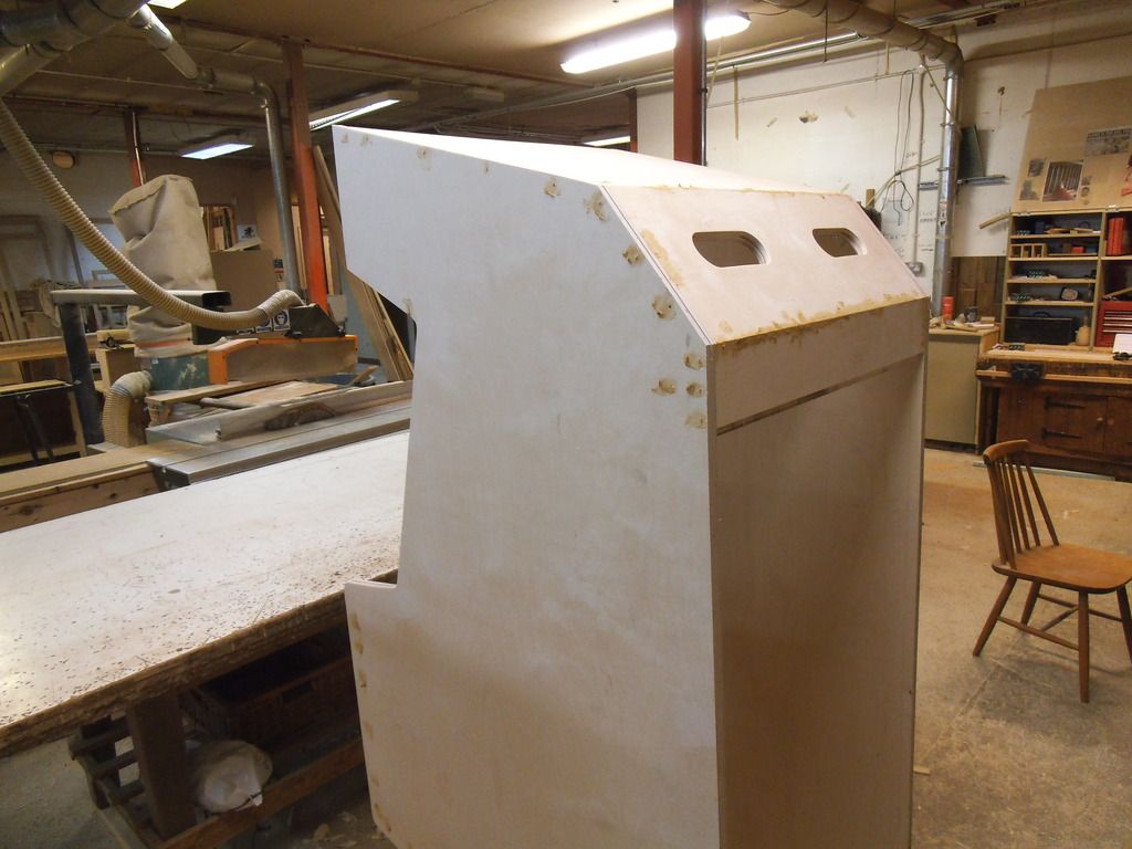 I did the same as my Robotron regarding the shape of the sides...I got a piece of hardboard and just basically pressed it up against the original cab and drew around the shape and then cut it out at work with a jigsaw...